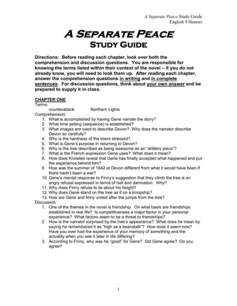Read A SEPARATE PEACE STUDY GUIDE QUESTIONS Audio CD